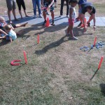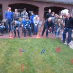 Iedere deelnemer krijgt 4 hoefijzers en gaat proberen de hoefijzers van een afstand van 2 en 3 meter één voor één om de paaltjes te gooien. De voorste paaltje is 10 punten en de achterste paaltje is 20 punten er zijn dan maximaal 80 punten te behalen, je kan alleen punten krijgen, wanneer het hoefijzer om het paaltje blijft liggen.