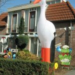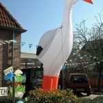 Opvallende geboorte ooievaar van maar liefst 4 m. hoog.
